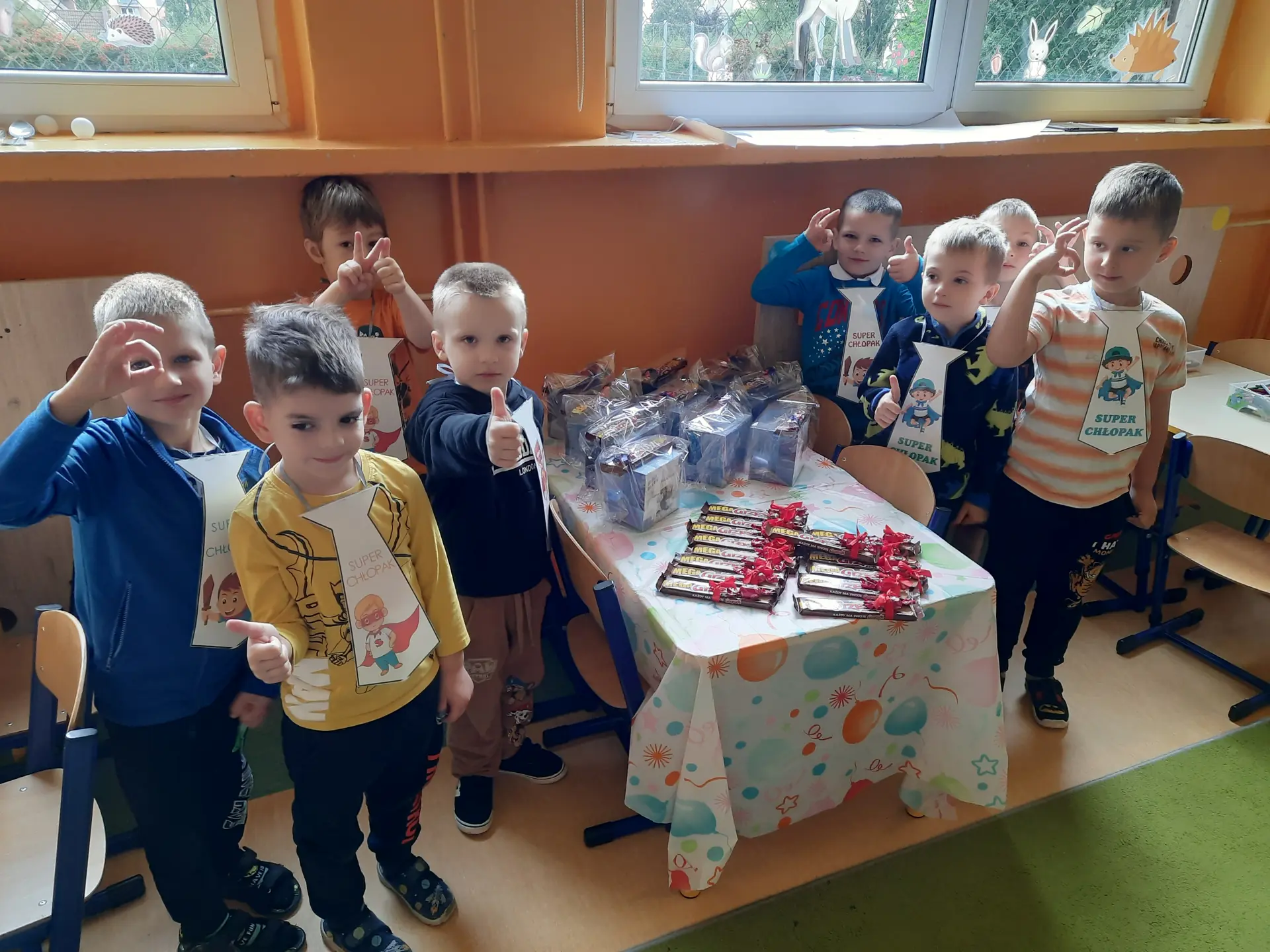 Sto uśmiechów, sto buziaków, dla kolegów przedszkolaków. 30 września dzieci z grupy Zuchy świętowały Dzień Chłopaka. Z tej okazji odbyły się zawody sportowe, podczas których chłopcy wykazali się siłą i sprytem. Po zawodach sportowych nastąpiło uroczyste wręczenie upominków. To był wyjątkowy dzień.
