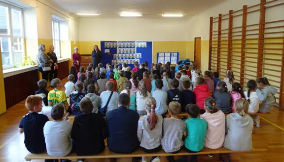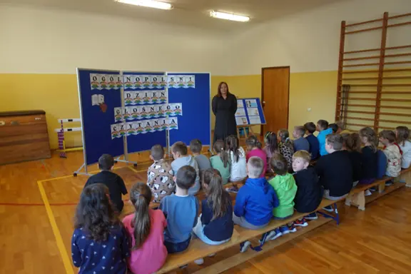 W związku z obchodami Ogólnopolskiego Dnia Głośnego Czytania, w ramach kampanii ,, Cała Polska czyta dzieciom", 29 września w naszej szkole odbyła się uroczystość głośnego czytania. Podczas tego wyjątkowego wydarzenia dyrekcja oraz nauczyciele przeczytali uczniom fragmenty znanych i lubianych utworów literackich, zachęcając do uważnego słuchania i odkrywania przyjemności płynącej z kontaktu z książką. Zadaniem uczniów było rozpoznanie, z jakiej książki pochodził czytany fragment oraz, który z nauczycieli wcielił się w rolę lektora. Wydarzenie przebiegło w serdecznej, pełnej emocji i zaciekawienia atmosferze. Spotkanie z literaturą okazało się nie tylko doskonałą zabawą, ale też pięknym przypomnieniem, jak ważne jest codzienne czytanie - zarówno w szkole, jak i w domu.