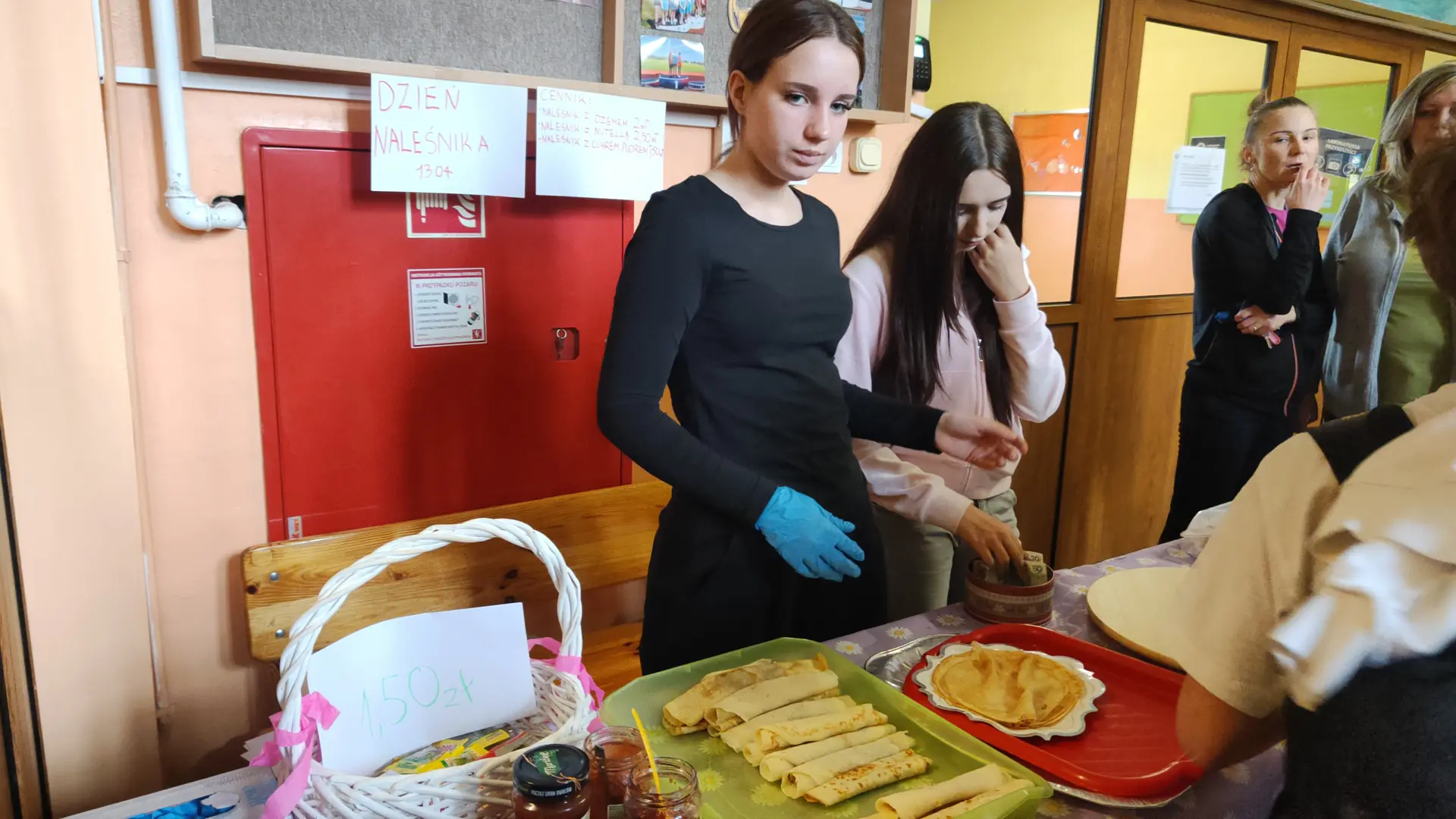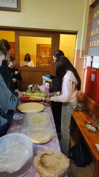 Naleśniki przygotowali w domu uczniowie i ich rodzice. W akcję pieczenia włączyli się też niektórzy nauczyciele. Dzięki temu na stołach znalazły się stosy ulubionych przekąsek, które wkrótce zniknęły w głodnych żołądkach kupujących.