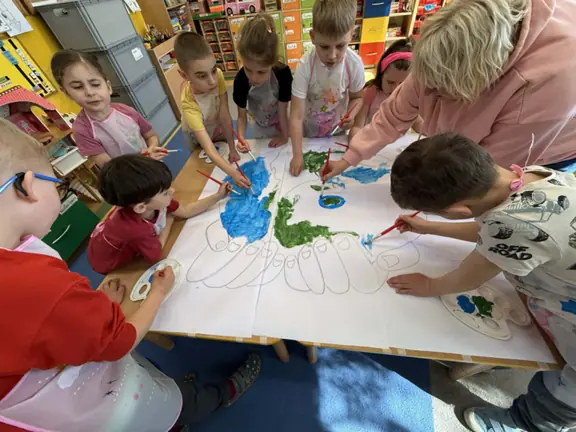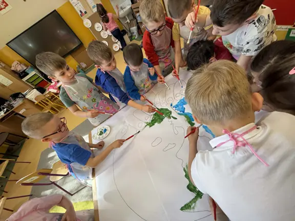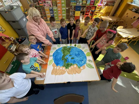 22 kwietnia odbył się w grupie Lilijki i w grupie Zuchy DZIEŃ ZIEMI. Dzieci wykonały z tej okazji wspaniałe plakaty, każdy narysował swego liścia- cegiełkę oraz dzieci wycięły dłonie na znak wsparcia dla naszej planety.