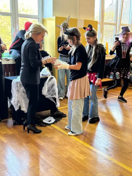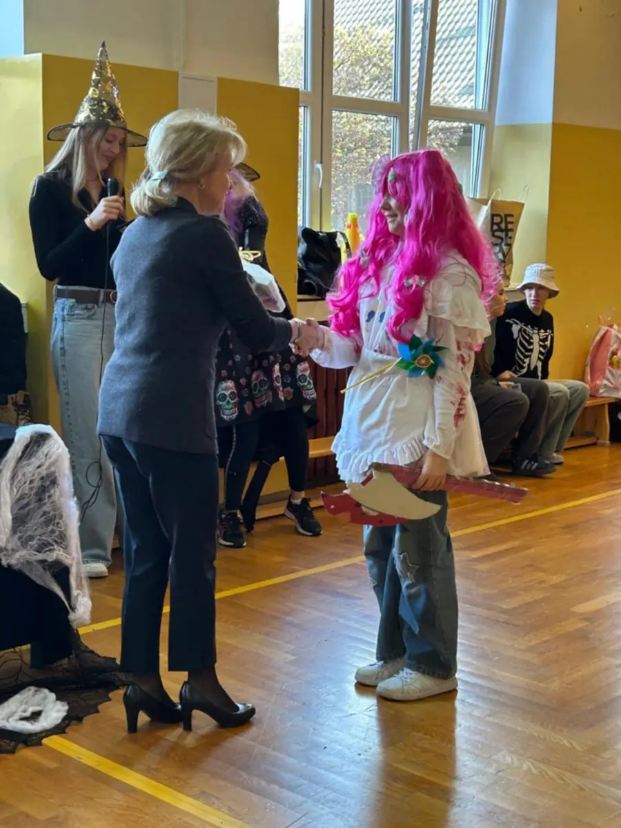 Jesień to czas zbioru cennego warzywa, jakim jest dynia. Samorząd uczniowski naszej szkoły zorganizował pokaz mody jesienno- dyniowo- halloweenowej. Uczniowie w rytm muzyki prezentowali przygotowane na tę okazję stroje. Zgromadzona widownia podziwiała z zaciekawieniem kreacje, nagradzając je brawami. Zwycięzcy otrzymali dyplomy i słodkie upominki wręczone przez panią dyrektor.