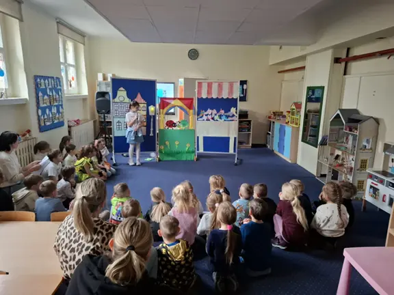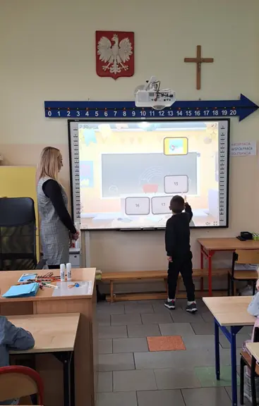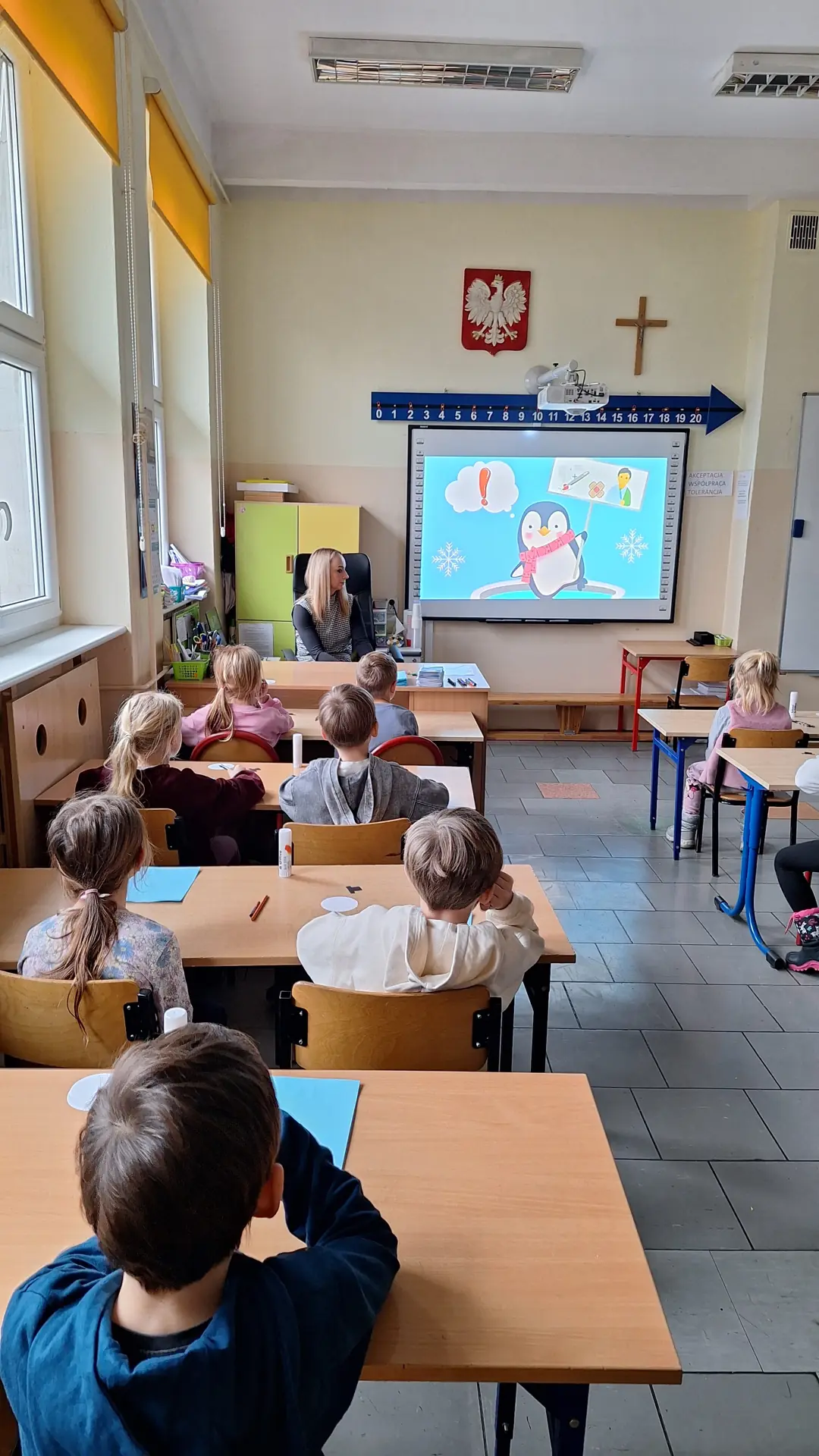 16 stycznia zawitali do nas wychowankowie Publicznego Przedszkola nr 5. W ramach tej wizyty dzieci obejrzały przedstawienie przygotowane przez naszych uczniów pod kierunkiem nauczycieli świetlicy. Kolejnym punktem programu był udział w lekcji poprowadzonej przez panią Milenę Rejniak. W sali 53 nasi goście zasiedli w ławkach, obejrzeli film na temat bezpieczeństwa podczas zabaw zimowych, wykonali zimową pracę plastyczną oraz zagrali w memory na tablicy multimedialnej. Zobaczyli także salę komputerową. Zabrali ze sobą ulotki z informacją o naszej szkole, swoje prace oraz dobre wrażenia.