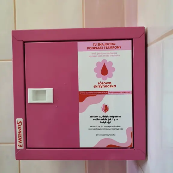 Z radością informujemy, że od dziś tj. 29.10.2025r. w toaletach damskich naszej szkoły pojawiły się RÓŻOWE SKRZYNECZKI. Dzięki współpracy pedagoga specjalnego oraz Rady Rodziców Szkoły Podstawowej nr 18 uczennice mają teraz stały dostęp do środków higienicznych w sytuacjach nagłych. Celem akcji jest wsparcie i zapewnienie komfortu wszystkim dziewczętom oraz przełamywanie tabu związanego z menstruacją. Zachęcamy do korzystania ze skrzyneczek zgodnie z ideą wzajemnej troski - jeśli możesz, dołóż coś od siebie, aby pomóc innym.