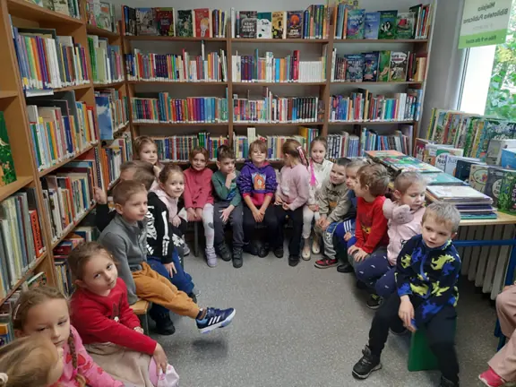 Dzieci z grupy Zuchy odwiedziły dzisiaj osiedlową bibliotekę. Podczas spotkania dowiedziały się na czym polega praca bibliotekarza oraz poznały zasady wypożyczania książek. Dodatkową atrakcją było wysłuchanie bajki i możliwość samodzielnego obejrzenia zbiorów bibliotecznych.