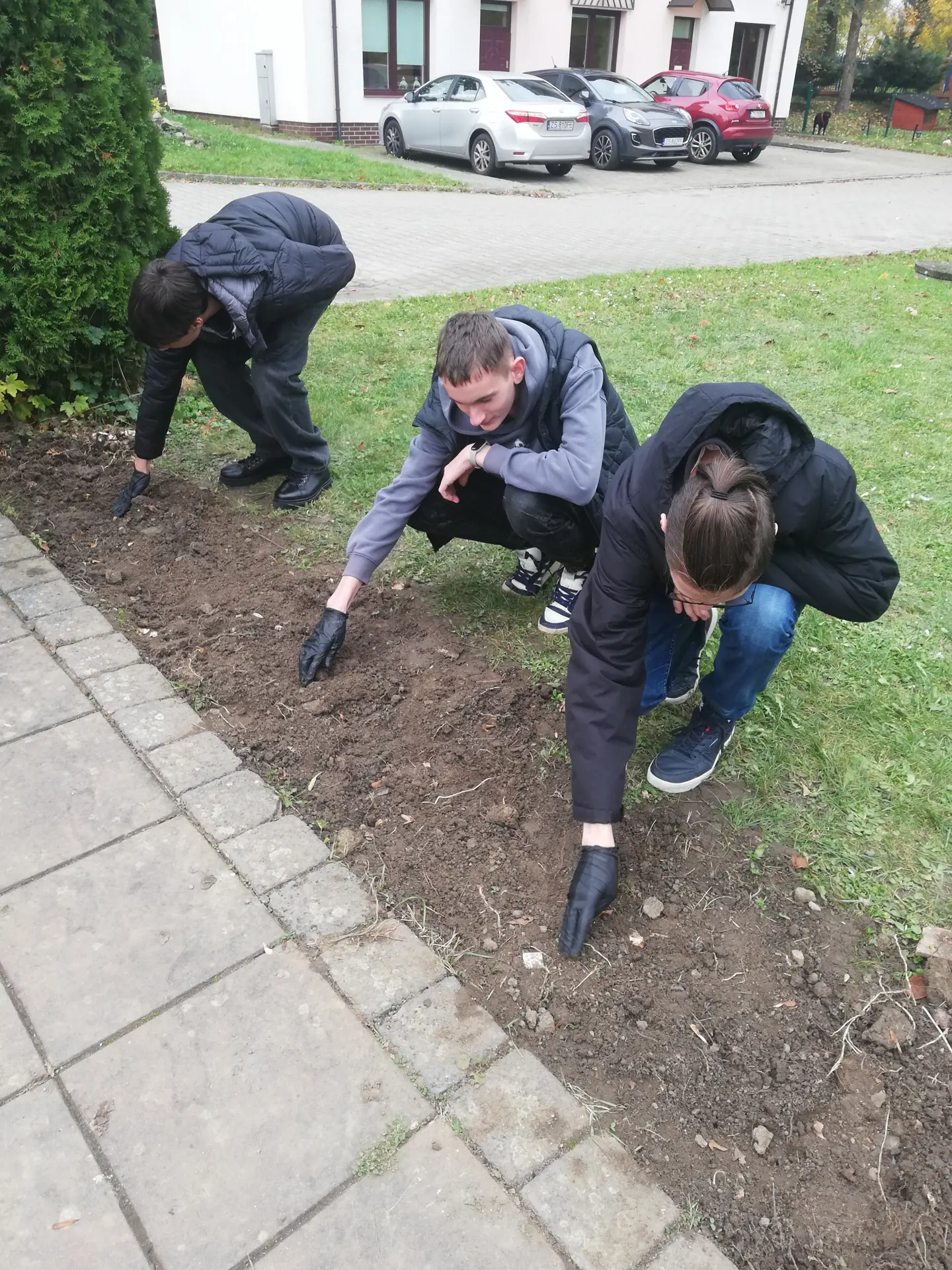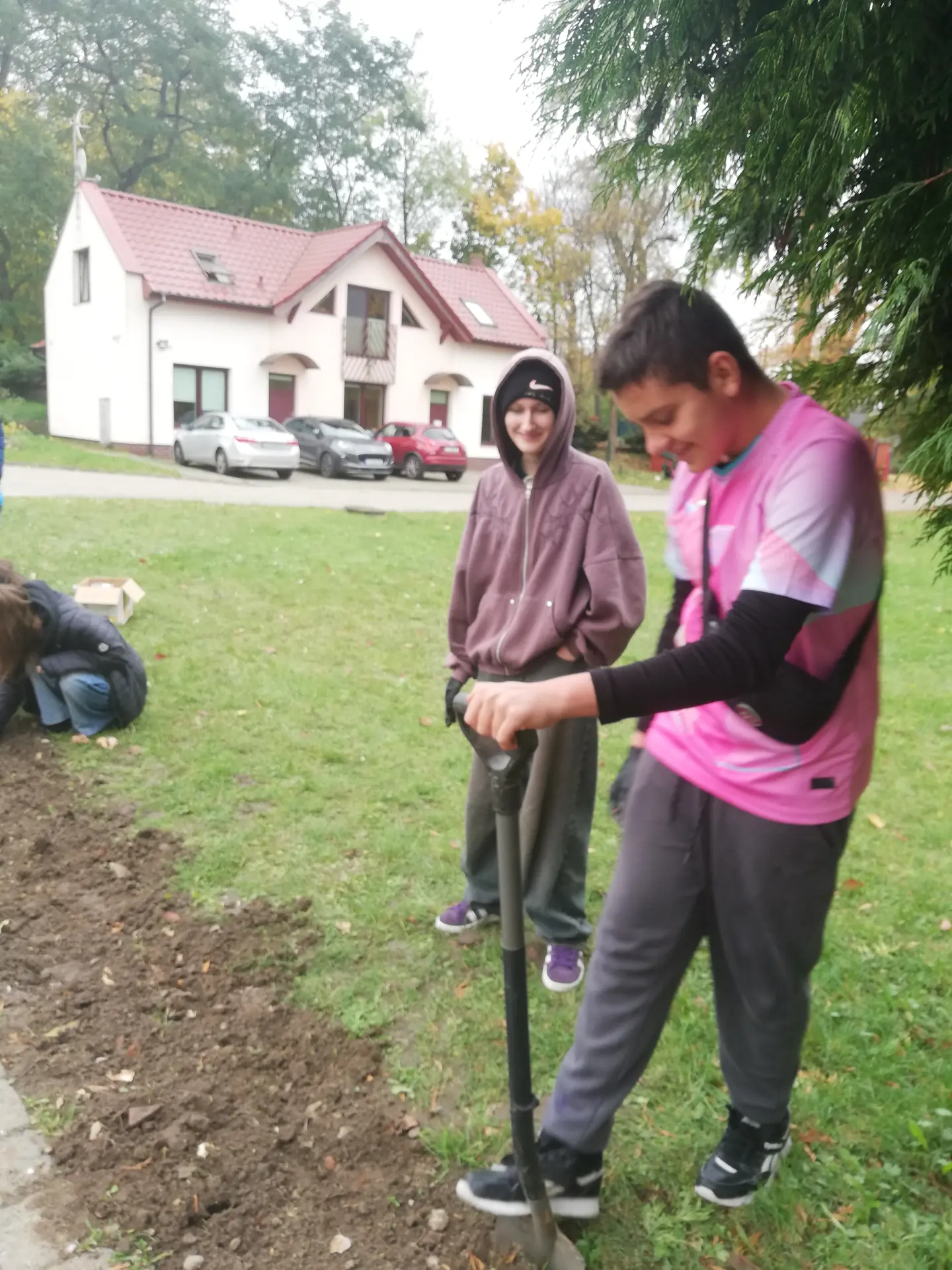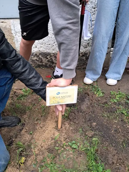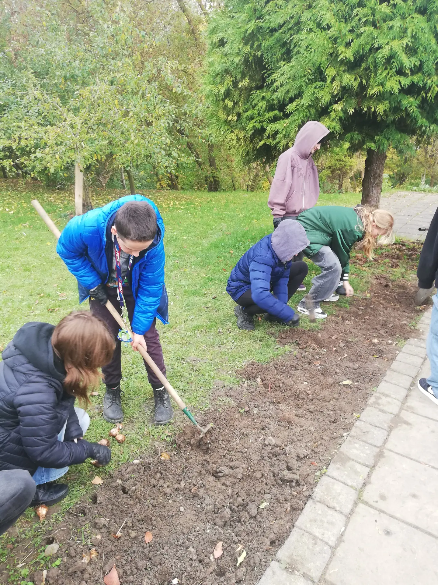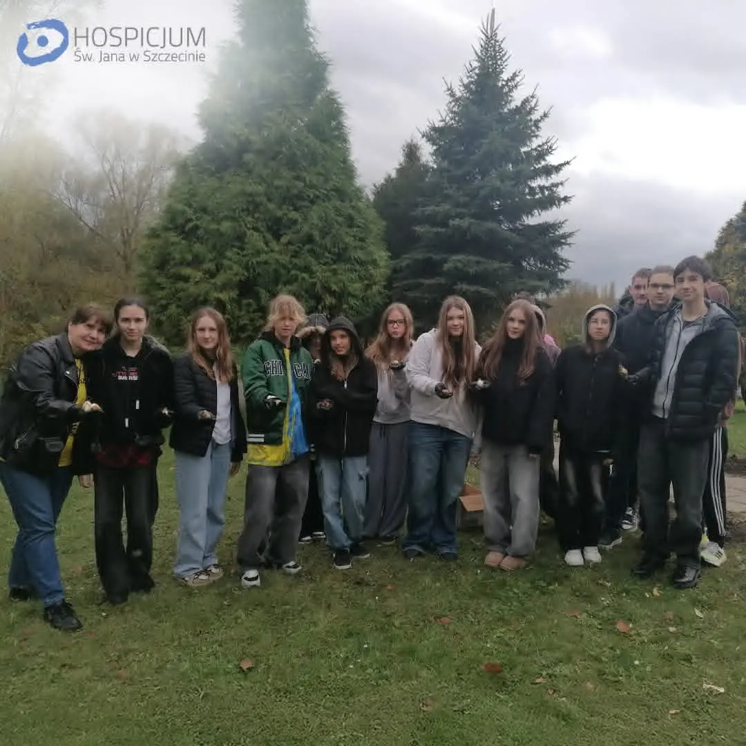 W piątek 24 października 2025 roku grupa uczniów ze Szkolnego Koła Wolontariatu, wraz z opiekunem p. Anią Czarnobaj, udała się do Szczecińskiego Hospicjum św. Jana Ewangelisty, aby wziąć udział w corocznej akcji „Pola Nadziei” . Wspólne spotkanie, rozmowy na temat hospicjum i idei wolontariatu hospicyjnego, a następnie posadzenie cebulek żonkili w ogrodzie, to wyraz naszego zaangażowania w niesienie pomocy chorym mieszkającym w hospicjum. Po posadzeniu żonkili kilkoro wolontariuszy pod opieką pani psycholog odwiedziło chorych, a pozostali przygotowali kolorowe plakaty na kolejną akcję-Dzień Życzliwości. W tym roku p. Agnieszka-koordynatorka hospicyjnego wolontariatu przekazała nam cebulki żonkili, abyśmy posadzili w naszym szkolnym ogrodzie.