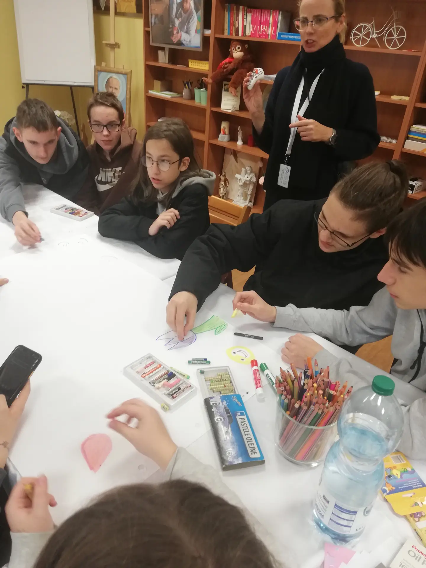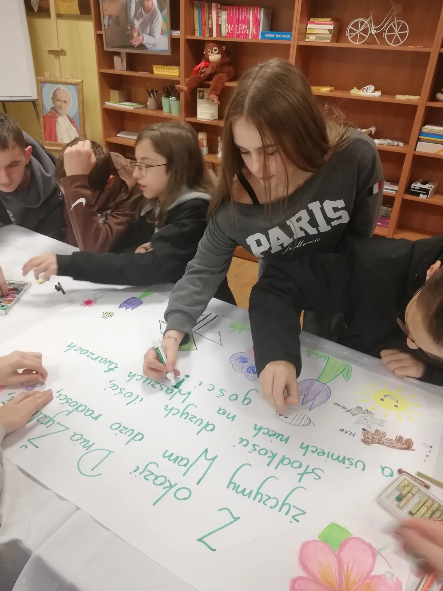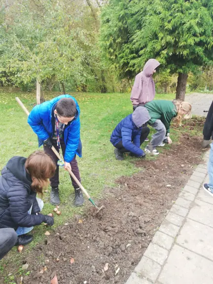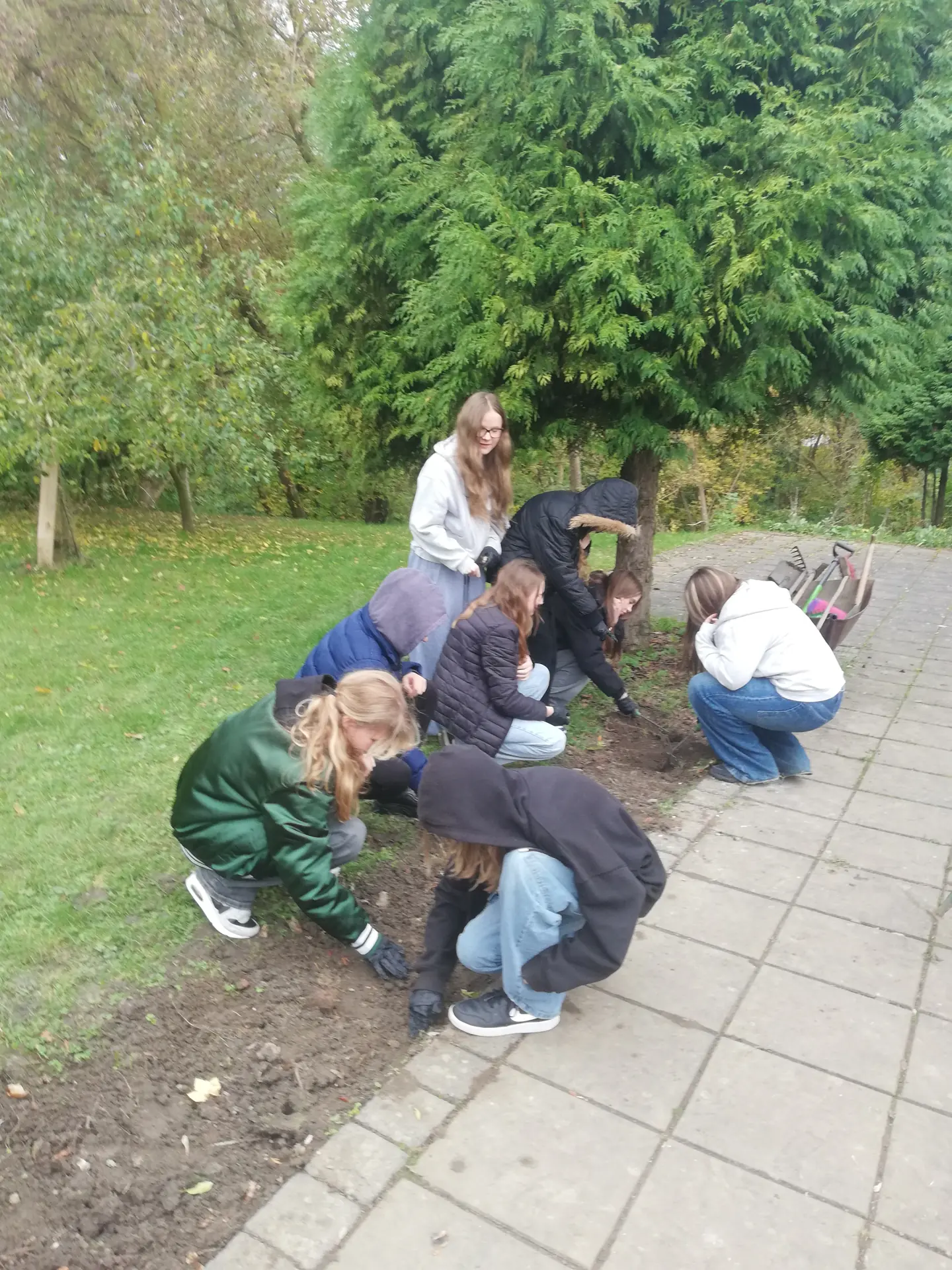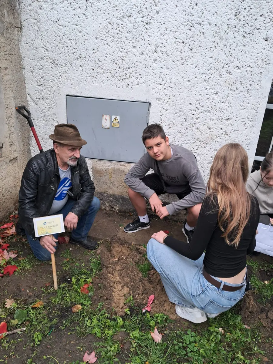 W piątek 24 października 2025 roku grupa uczniów ze Szkolnego Koła Wolontariatu, wraz z opiekunem p. Anią Czarnobaj, udała się do Szczecińskiego Hospicjum św. Jana Ewangelisty, aby wziąć udział w corocznej akcji „Pola Nadziei” . Wspólne spotkanie, rozmowy na temat hospicjum i idei wolontariatu hospicyjnego, a następnie posadzenie cebulek żonkili w ogrodzie, to wyraz naszego zaangażowania w niesienie pomocy chorym mieszkającym w hospicjum. Po posadzeniu żonkili kilkoro wolontariuszy pod opieką pani psycholog odwiedziło chorych, a pozostali przygotowali kolorowe plakaty na kolejną akcję-Dzień Życzliwości. W tym roku p. Agnieszka-koordynatorka hospicyjnego wolontariatu przekazała nam cebulki żonkili, abyśmy posadzili w naszym szkolnym ogrodzie.