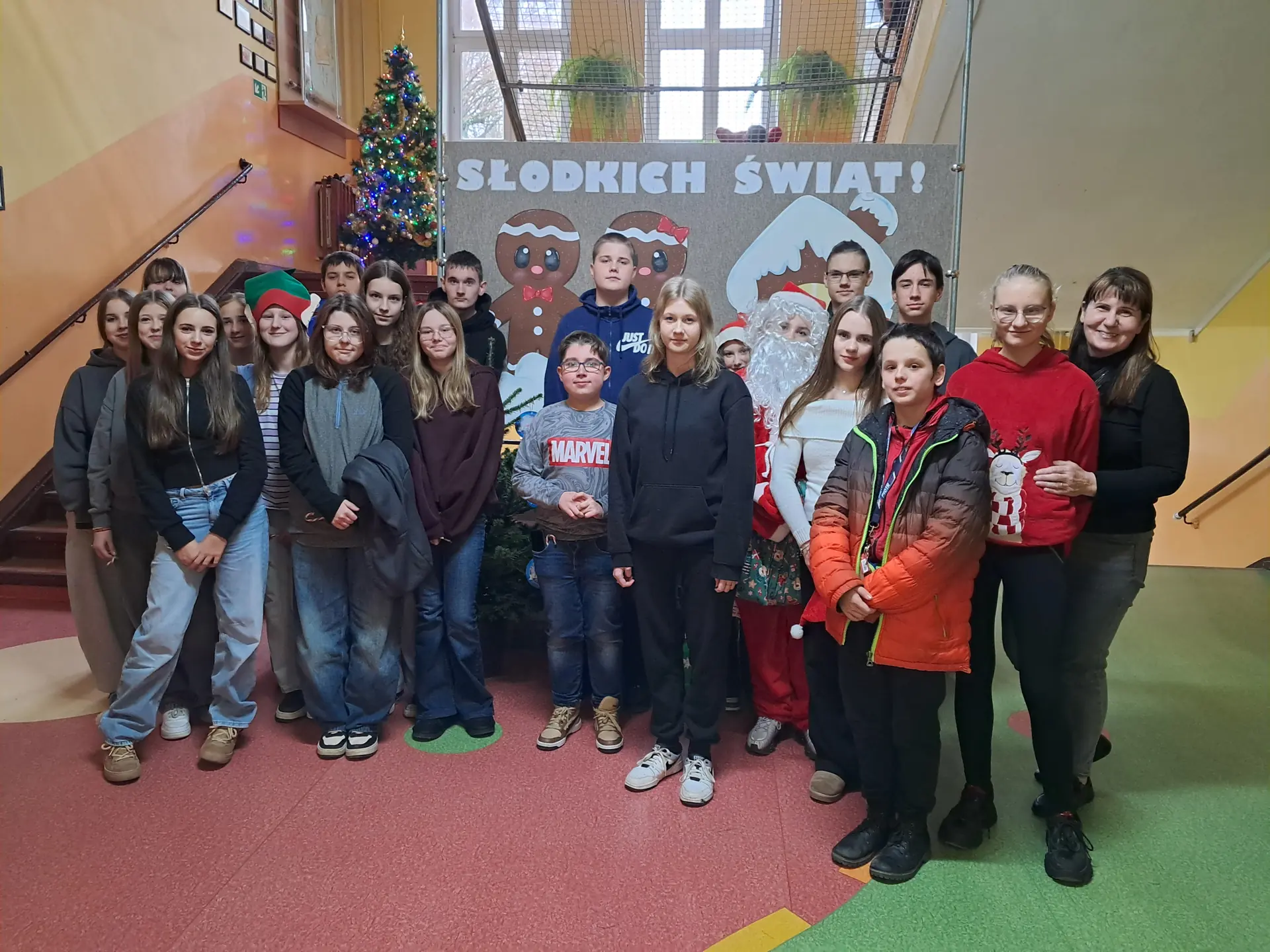 5 grudnia to Międzynarodowy Dzień Wolontariusza. Z tej okazji w naszej szkole odbyło się spotkanie wszystkich uczniów działających w Szkolnym Klubie Wolontariatu. Na spotkaniu opiekunka SKW p. Ania Czarnobaj złożyła wszystkim życzenia, obdarowała słodkim upominkiem i zachęciła do dalszego działania. Po spotkaniu zrobiliśmy pamiątkowe zdjęcia w świątecznej scenerii naszej szkoły.