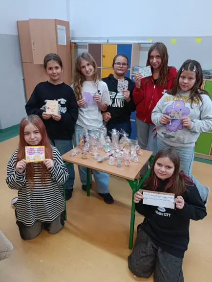 Wolontariusze z klas piątych i szóstych przygotowali ponad 50 kartek z życzeniami, które trafiły do pacjentów oddziału psychiatrycznego w Nowym Czarnowie, a także do mieszkańców Domu Kombatanta oraz pacjentów oddziału onkologicznego w Szczecinie. Do każdej kartki dołączono drobne upominki. Oddział psychiatryczny otrzymał dodatkowo figurki aniołków, aby dodawały otuchy i symbolicznie czuwały nad pacjentami w trudnych momentach. Dzięki ogromnemu zaangażowaniu młodych wolontariuszy udało się przekazać wiele serdeczności i wsparcia tym, którzy najbardziej tego potrzebują.